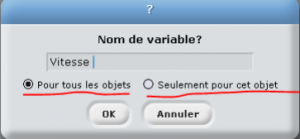 Lors de la création d’une variable, on a deux choix : l’affecter à tous les objets (variable globale) ou