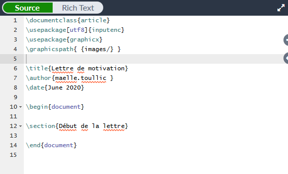 Bien que nous ne souhaitions pas écrire un article mais une lettre, nous n’allons pas changer le type de document car l’article nous permettra d’insérer une image plus facilement.
