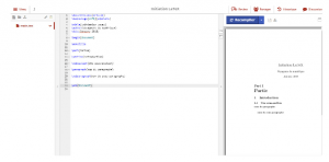Vous pourrez ainsi retrouvez tous vos documents en ligne sur n’importe quel ordinateur puisque chaque document s’enregistre automatiquement dans votre session. De plus, l’objectif de ce site internet est de rendre accessible le langage LaTeX afin que tout le monde puisse l’employer : l’interface est donc ergonomique. Nous allons balayer dans cette fiche les éléments essentiels à suivre et connaître pour pouvoir produire un document LaTeX.
