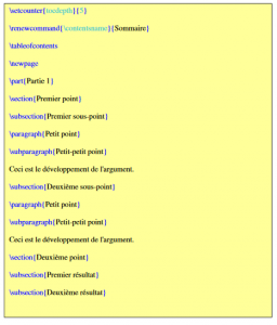 Nous n’utiliserons pas ici le chapitre, puisque celui-ci ne peut être utilisé dans un document article ou letter.
