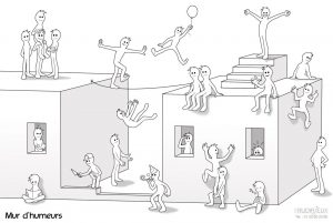 Contrairement au photolangage le mur d’images est un outil plus distancié. Il s’agit de dessin et on aborde surtout la place que l’on a dans un groupe et face à l’atelier et l’apprentissage.