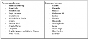Discuter avec les résidents autour des personnages historiques sélectionnés, en s’appuyant sur le livre et les photos imprimées (qui pourront passer de main en main à la page ouverte sur le personnage qui est traité à l’oral) : explication de l’histoire de ces personnages, distribution des différentes fiches explicatives sur les biographies des personnages. Ensuite, selon le nombre de résidents présents, choix des personnages les plus pertinents pour écrire leurs noms sur les Post-it.