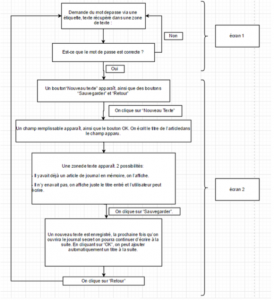 L’application que nous allons créer ici est un petit peu plus compliquée que celles que nous avons créées jusqu’à présent. C’est pourquoi il peut être intéressant de se faire un schéma récapitulatif de ce que l’on veut. Nous vous conseillons de toujours faire ainsi lorsque vous créez une application. Éteignez votre ordinateur et prenez une feuille de papier pour dessiner le « squelette » de votre application.
