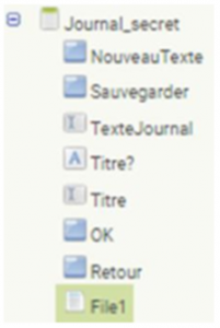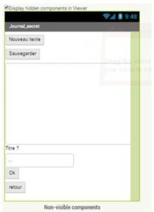 Dans la programmation, nous allons avoir besoin de créer un deuxième écran, restez dans la partie design et ajoutez un deuxième écran, appelez le « Journal_secret ».