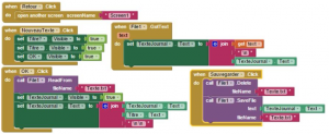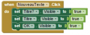 Nous allons maintenant programmer l’application en allant dans Blocks. Si vous ne trouvez pas l’un des blocs utiles, n’hésitez pas à consulter l’annexe.