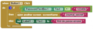 Il va falloir faire en sorte que lorsque l’on rentre un mot de passe, le programme vérifie si c’est le bon. Créez le bloc suivant :
