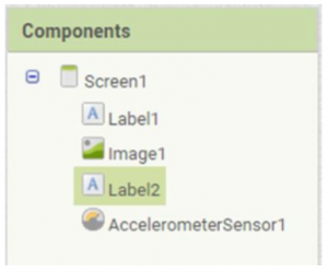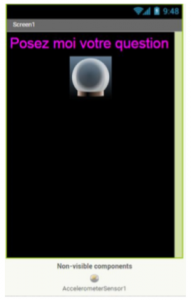 Dans la partie Sensors, de la Palette, prenez l’AccelerometerSensor et ajoutez-le à votre application. Il faut également rajouter un nouveau Label sous l’image, qui servira à afficher les réponses de la voyante.