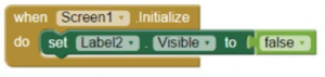 Le premier bloc à créer permet de cacher notre Label2 lors de l’initialisation de l’application.