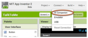 Dans le menu « Connect » de App Inventor, choisissez « AI Companion ».