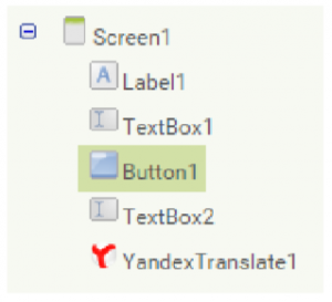 Depuis la partie gauche Palette/User Interface, ajouter un bouton cliquable (Button) à votre application. Lorsque l’utilisateur appuiera dessus, la phrase qu’il vient d’entrer sera