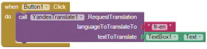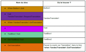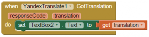 Une fois que le programme a obtenu la traduction (GotTranslation) depuis le service Yandex, il stocke deux paramètres : responseCode qui indique si la traduction a eu lieu et translation qui récupère la traduction via “get translation” et l’affiche via le “set”.