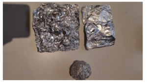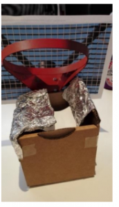 Pour votre activité, faites créer aux participants 2 volets en aluminium. Il faut qu’ils puissent se placer de chaque côté de votre boîte en laissant 1 cm environ au milieu. De plus, recouvrez une balle de Ping Pong d’aluminium ou faites une boule de papier et recouvrez-la d’aluminium :
