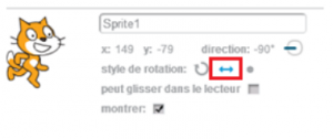 - Notre petit chat ne regarde pas dans la bonne direction, cliquez sur le « i » bleu à côté de son icone. Et sélectionnez les options :