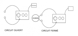 Les deux ne se touchant pas : le courant ne peut circuler : le circuit est dit ouvert.