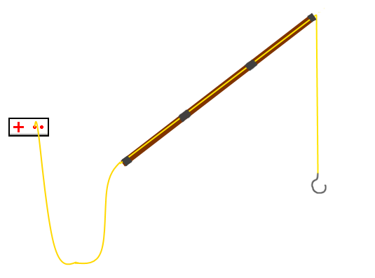 Notez que si vous utilisez un fil dénudé, recouvrez de scotch l’intégralité du fil, le long de la canne à pêche, pour que ce soit bien isolé.
