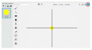 Pour cela, cliquer une première fois sur le petit pinceau en dessous de la scène, dans la liste des lutins, et dessiner une balle. Recommencer l’opération deux fois pour dessiner une brique et une raquette.