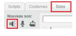 Maintenant, il faut faire en sorte que la brique disparaisse en produisant un son quand elle est touchée par la balle. Pour utiliser un son, il faut d’abord l’importer : aller dans l’onglet « Sons », cliquer sur « Choisir un son dans la bibliothèque », et choisir un son.