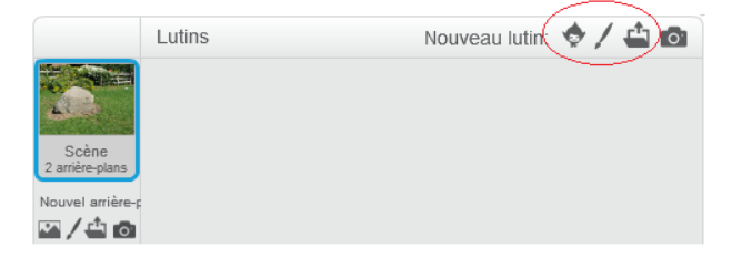 Cliquer sur l’icône de lutin en-dessous de la scène pour en ajouter un nouveau. Choisir parmi la bibliothèque (par exemple « ball » dans la catégorie « choses »), ou bien le dessiner (onglet « costume »).