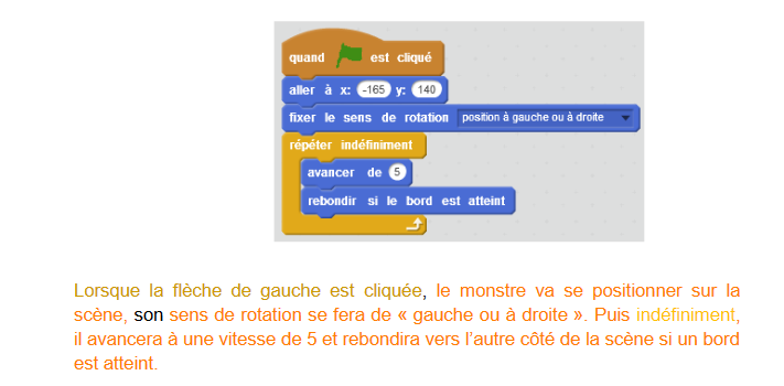 A présent, nous allons programmer notre monstre de manière à ce qu’il puisse se déplacer de gauche à droite puis de droite à gauche, indéfiniment.