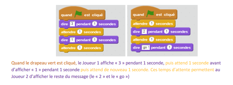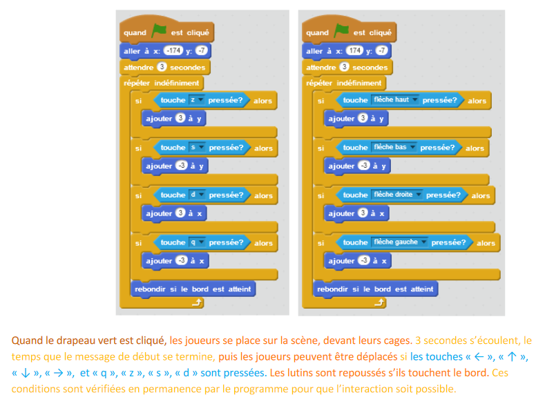 Les instructions en haut du bloc correspondent à la position de départ des deux joueurs, elles sont à ajuster jusqu’à obtenir un rendu satisfaisant.