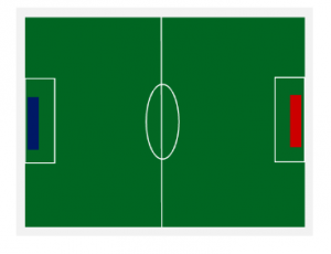 Placer de chaque coté dans les cages un rectangle de couleur, ces couleurs doivent être différentes entre elles et différentes du terrain. Ici, bleu et rouge :