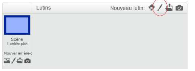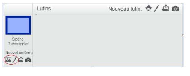 Il peut soit être dessiné (icône de pinceau), soit importé de la bibliothèque Scratch (icône de paysage).