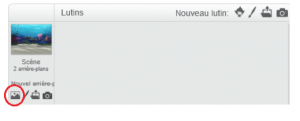 Cliquer sur «Dessiner un nouveau lutin» (l’icône de pinceau sous la scène) :
