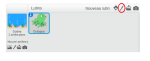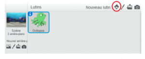 Pour cela, créer un nouveau lutin avec le bouton de lutin sous la scène, et choisir un modèle, par exemple « octopus » :