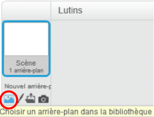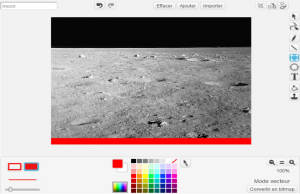 Choisir un arrière-plan, par exemple « moon » dans la catégorie « autre ». Puis aller dans l’onglet « arrière-plan » (au-dessus de la palette de blocs), et dessiner une barre rouge en bas de l’image.