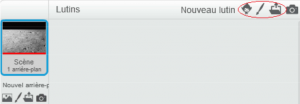 Cliquer sur l’icône lutin à côté de « nouveau lutin », et choisir un vaisseau dans la bibliothèque (par exemple dans la catégorie « transport »). Il est aussi possible d’utiliser l’icône pinceau (pour dessiner librement le vaisseau), ou l’icône fichier pour charger une image depuis l’ordinateur.