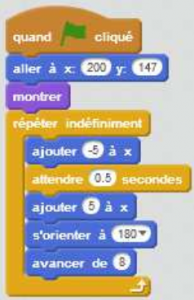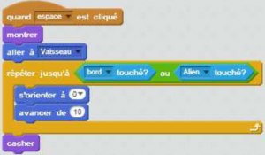 A présent, ajouter les blocs suivants, toujours dans le script de l’alien :